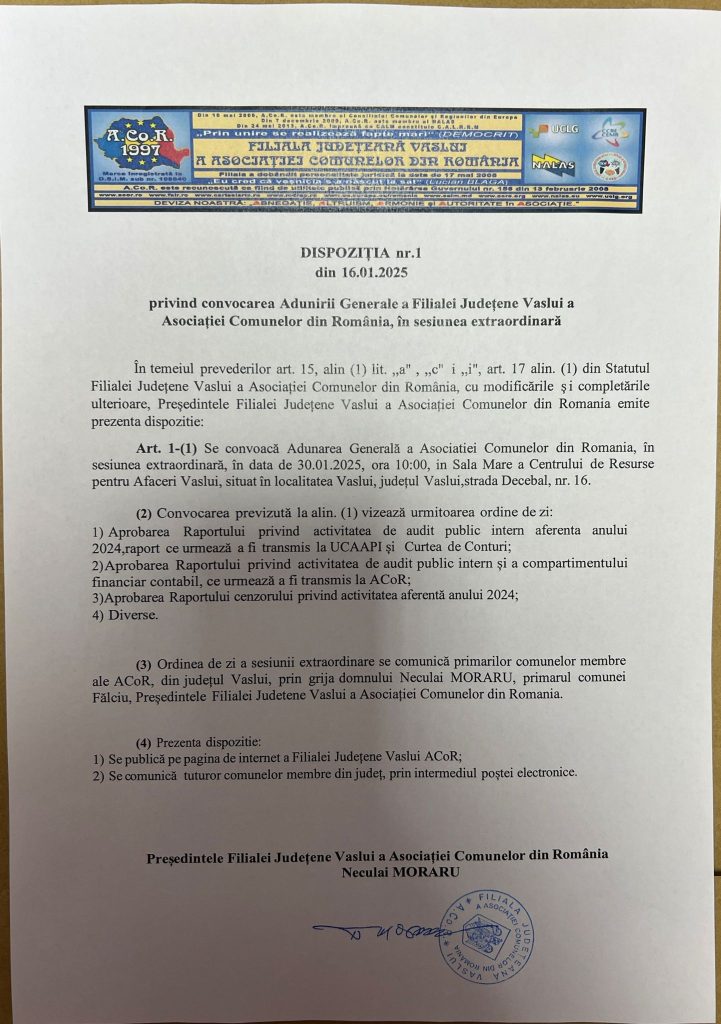 DISPOZIȚIA NR 1 DIN 16.01.2025